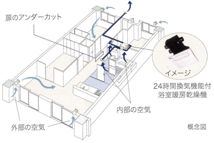 ※24時間換気システムは建築基準法によるシックハウス対策の規制により、常時強制的に換気を行うようになっています。