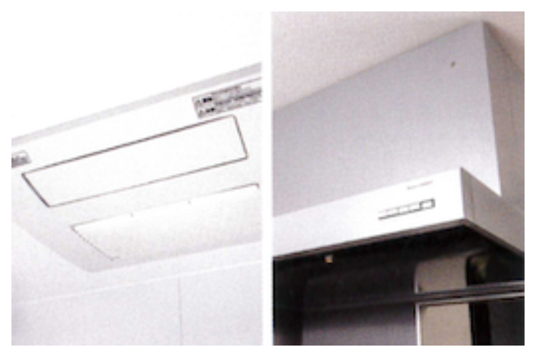 臭気が生じる「トイレ」湿度が生じる「浴室」・「洗面室」について「機械換気設備」を採用して強制的に排気を行っています。また、調理の際に煙・蒸気などが生じる 「キッチン」には、レンジフードによる排気を行っています。