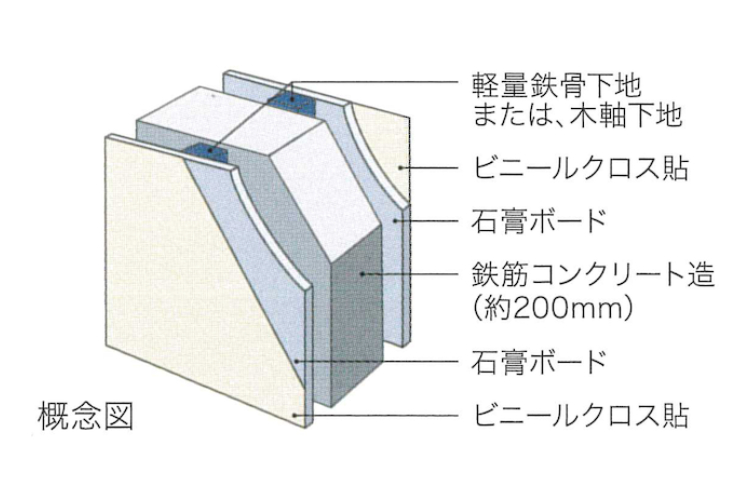 『プライム横浜岸谷』では、厚さを約200mmとした鉄筋コンクリート戸境壁を採用し遮音性を考慮しています。