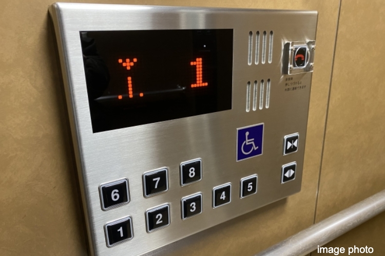 エレベーター内操作パネルについては車椅子に乗っていても操作できるように約1.0mの高さに操作盤が設置されています。また内部には手摺を設置すると共に正面の壁に鏡を取付、車椅子が後ろ向きで乗降りしやすいように設計されています。